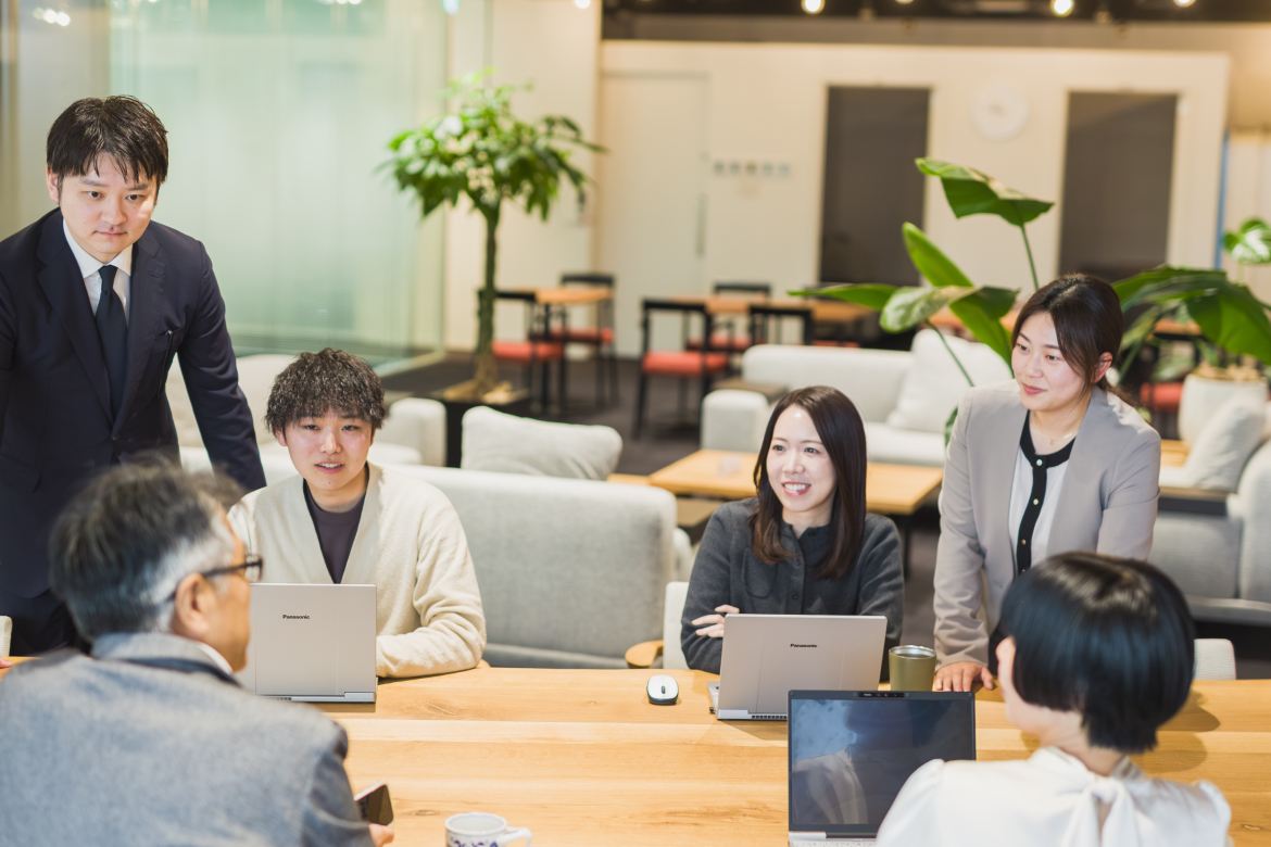 「個人戦」ではなく「団体戦」のチームです。メンバー同士で競い合うようなドライな空気は一切ありません。「どうすればチーム全員で目標を達成できるか」を常に考え、誰かが大きな案件を受注すれば全員で喜び、困っていれば助け合います。